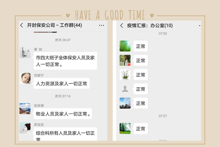 春節(jié)期間,孫國杰總經理、李梅副總經理等領導多次深入基層督導疫情防控工作,教育引導保安員提高文明素質,增強防控意識,做好自我防護。并利用微信工作群對疫情防控工作進行再部署、再安排、再要求。要求各級管理人員要把疫情防控作為當前*大的政治任務,切實履職擔責,認真抓好疫情防控工作,做到全員宣傳到位、措施到位、防控到位。
