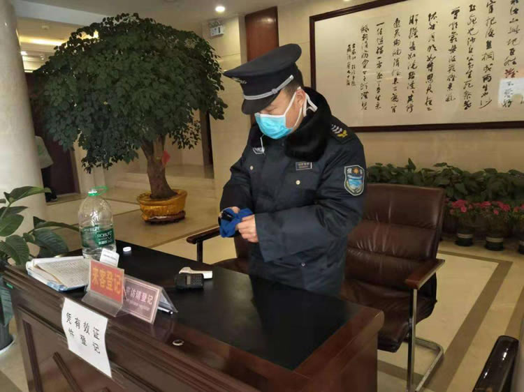 保安隊伍嚴把客戶單位人員和車輛出入關,對進入值勤區(qū)域的人員進行體溫測量、登記、和車輛消毒,配合客戶單位對辦公場所等公共區(qū)域進行消毒防控,做好安全防護措施。