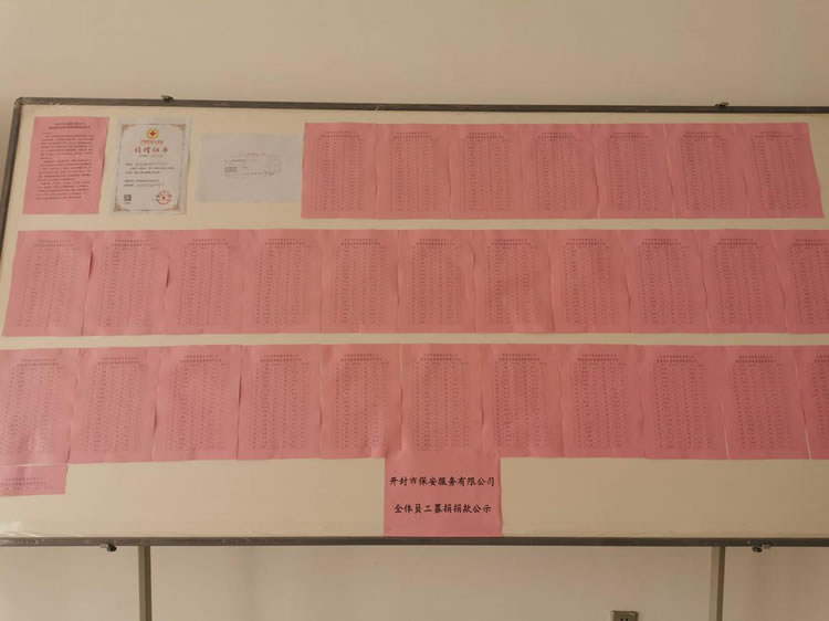 疫情無(wú)情,人間有愛(ài);一方有難,八方支援。本次募集的所有善款及時(shí)向全體員工公示,主動(dòng)接受財(cái)政、審計(jì)、紀(jì)檢部門(mén)及新聞媒體等社會(huì)的監(jiān)督,確保專(zhuān)款專(zhuān)用。開(kāi)封市保安服務(wù)有限公司將持續(xù)關(guān)注疫情情況,同全國(guó)人民攜手一心,共同打贏這場(chǎng)疫情防控阻擊戰(zhàn)!