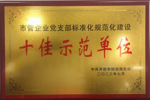 8月10日,在市財(cái)政局召開(kāi)的市管國(guó)有企業(yè)黨支部標(biāo)準(zhǔn)化規(guī)范化建設(shè)驗(yàn)收表彰大會(huì)上,我公司黨支部榮獲“開(kāi)封國(guó)企黨建十佳示范支部”稱號(hào)。